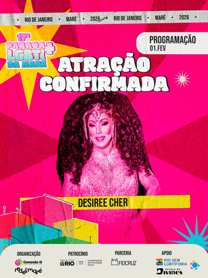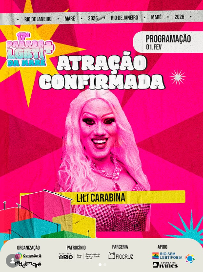 Na 17ª Parada LGBTI+ da Maré, que realiza o 2º Festival da Diversidade LGBTI+ da Maré, a presença de Negriny Venture, Kastelany, Danny D’Avalon, Desiree Cher e Lili Carabina reafirma a importância da arte drag como ferramenta de visibilidade, produção cultural e disputa simbólica do espaço público.